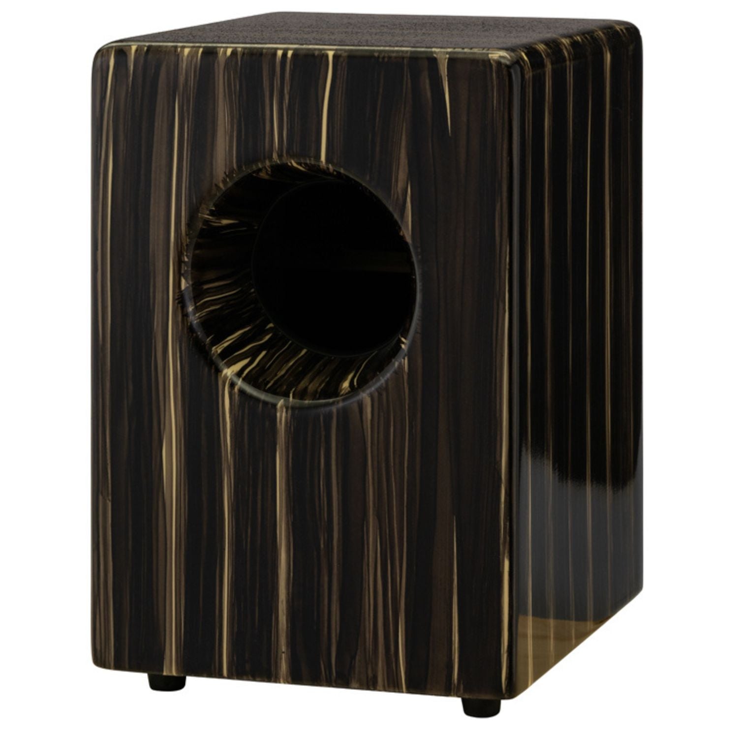 SIZE: 18.75" Tall X 12.5" Wide x 12.5" Deep FACEPLATE: Asiatic hardwood BODY: Fiberglass SNARES: Fixed, three sets BASS PORT: Built in, rear facing FINISH: #635 Artisan Zebra Wood