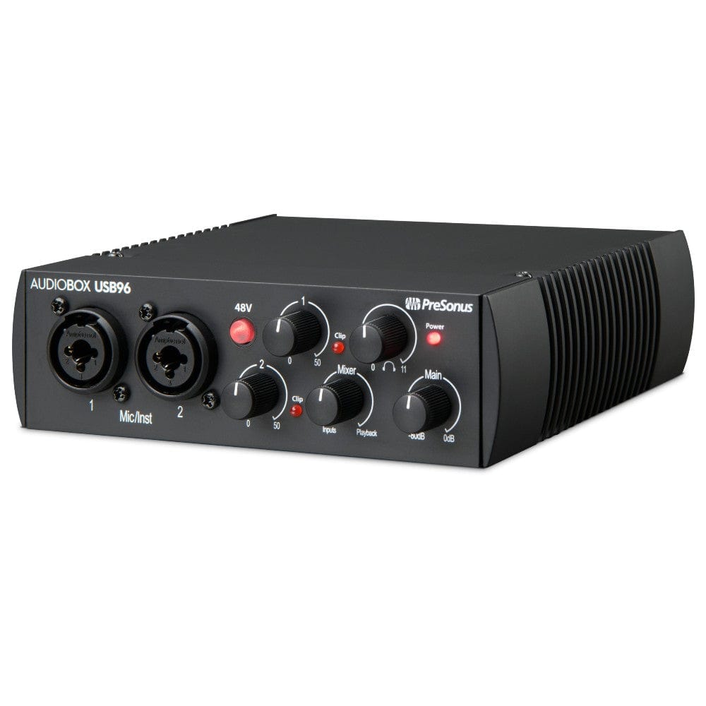 Presonus AudioBox USB96 Recording System Overview: Simple, reliable, and portable Whether you are a musician, producer, or podcaster on a tight budget, the AudioBox USB 96 audio interface is for you! This simple, handy little audio/MIDI interface has just the right features for basic recording needs, allowing you to plug in and start recording up to 24-bit, 96 kHz audio right away Bus-powered and built to travel, the AudioBox USB 96 makes recording easy.