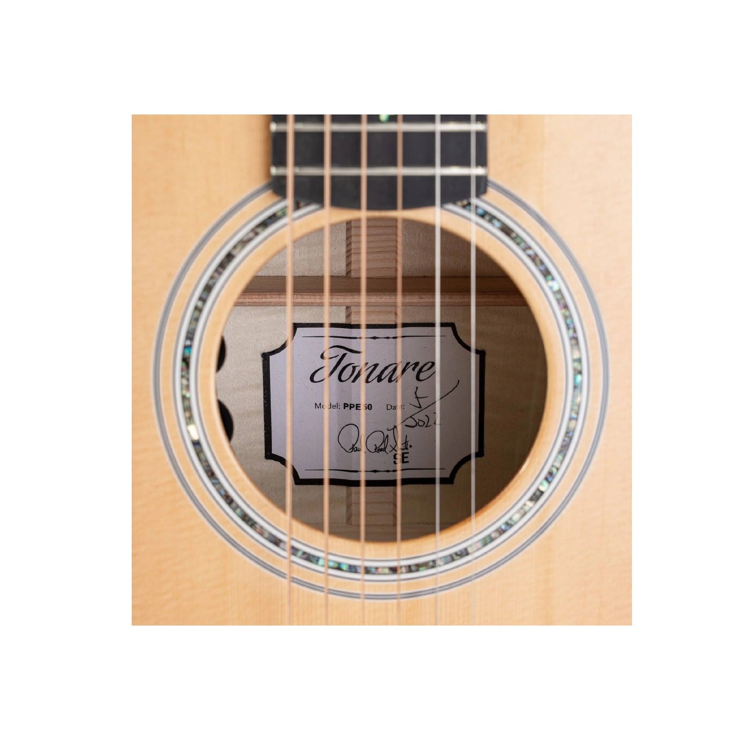 PRS SE P50E Tonare Parlor Electro Acoustic Guitar with Gigbag Overview: Small Body Big Voice The PRS SE P50E is a parlor-sized acoustic with a big voice. Featuring a solid spruce top and figured maple back and sides, the PRS SE P50E brings a sophisticated new aesthetic to the popular parlor platform.