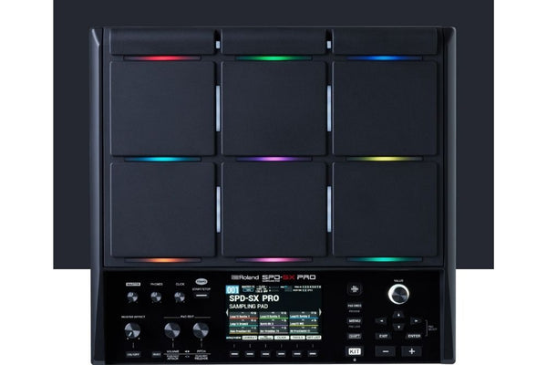 Roland SPD-SX PRO Flagship Electronic Sampling Pad THE FLAGSHIP SAMPLING SIDEKICK The SPD-SX PRO is the ultimate sampling pad for professional musicians. Built on the legacy of the SPD-S and SPD-SX, this flagship model integrates advanced sample pad technology with high-performance enhancements. Designed for the stage, the SPD-SX PRO features a large color display, customizable multi-color trigger lights, and expanded connectivity, making it the most powerful sampling pad yet.