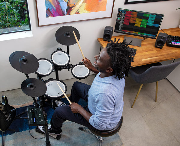 The TD-07KV also lets you explore creative opportunities that go far beyond any acoustic kit, with deep editing tools to craft custom sounds, onboard Bluetooth to play along with music tracks and lessons, USB to connect with computer recording software, and much more. Genuine V-Drums Performance Over two-plus decades, Roland V-Drums have established a well-earned reputation as the most realistic, best playing, and best sounding electronic drums available, bar none.