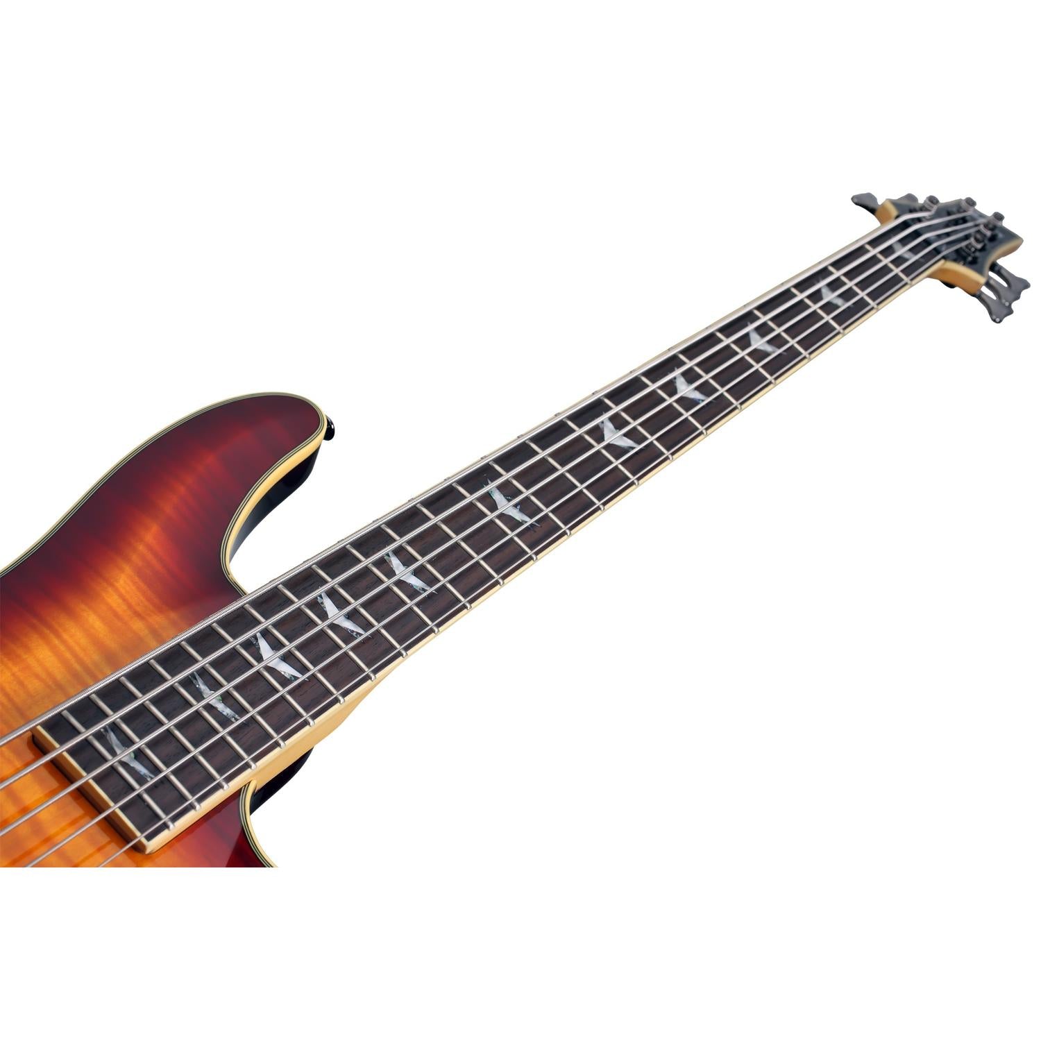 Schecter Omen Extreme-5 5-String Bass Guitar The Schecter Omen Extreme 5 Bass Guitar has jaw-dropping looks with its mahogany and flame maple body Active two-band EQ, Diamond pickups, 35-inch scale, and premium hardware make it a performer.