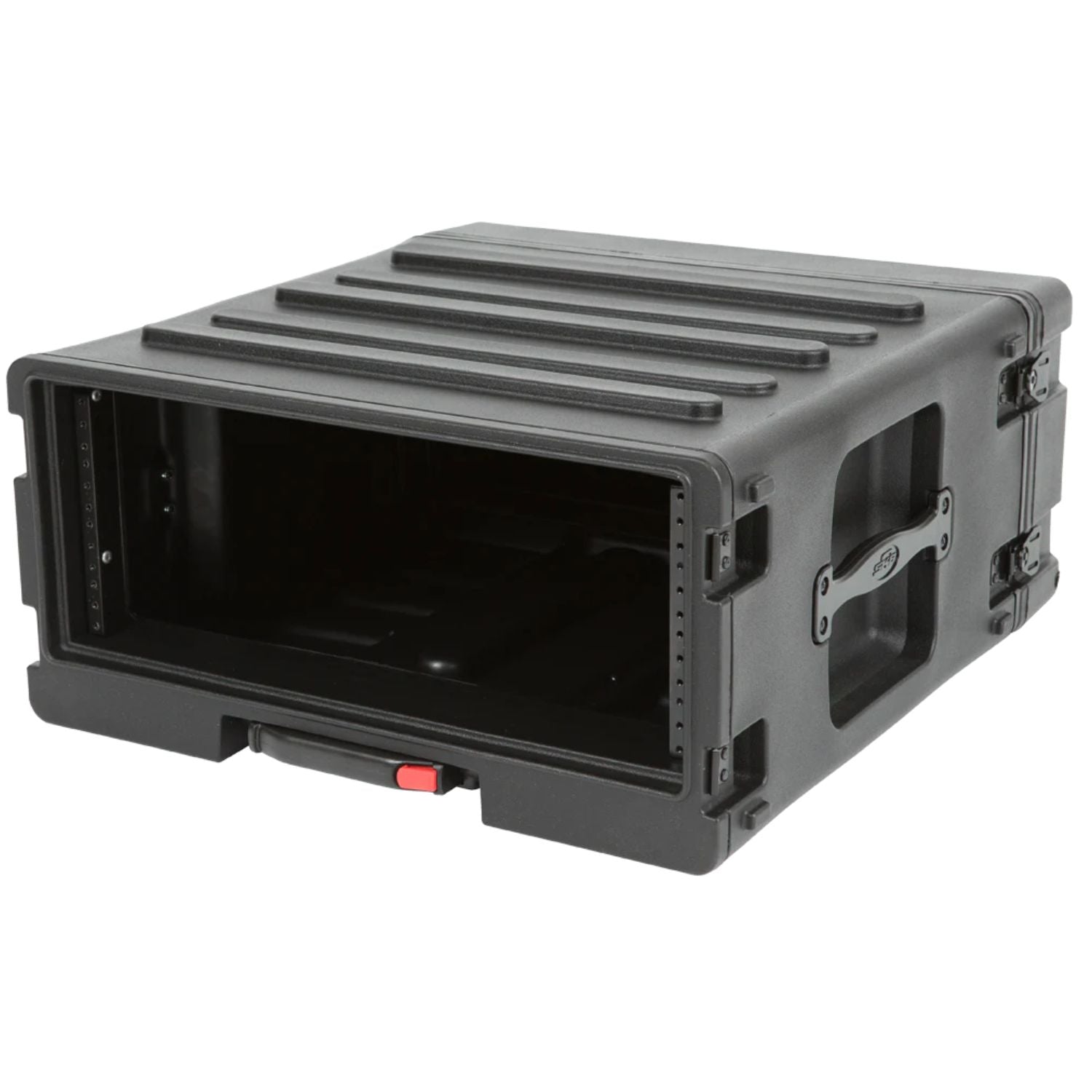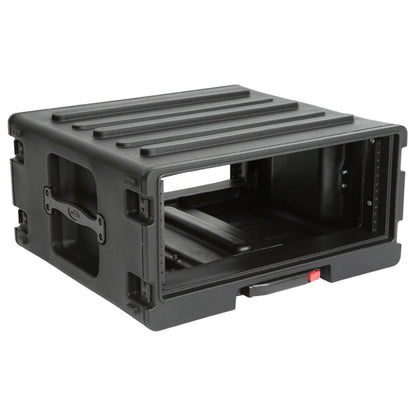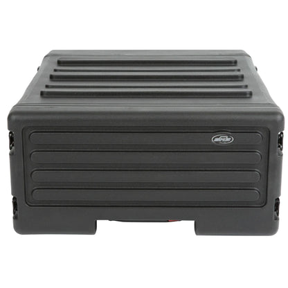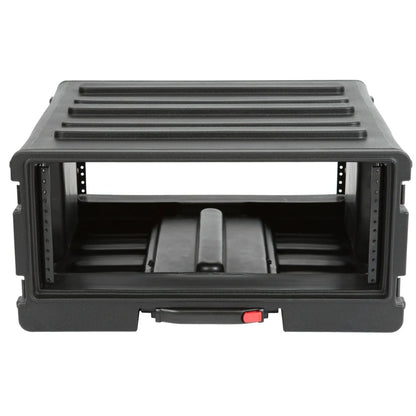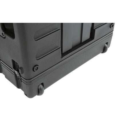 Available in 4U, 6U, and 8U sizes, SKB Roto Rolling Racks are roto-molded of Polyethylene (LLDPE) for extra strength and durability. These racks incorporate our one-touch pull handle and back lid mounted wheels to improve ease of transport and help eliminate heavy lifting and carrying.