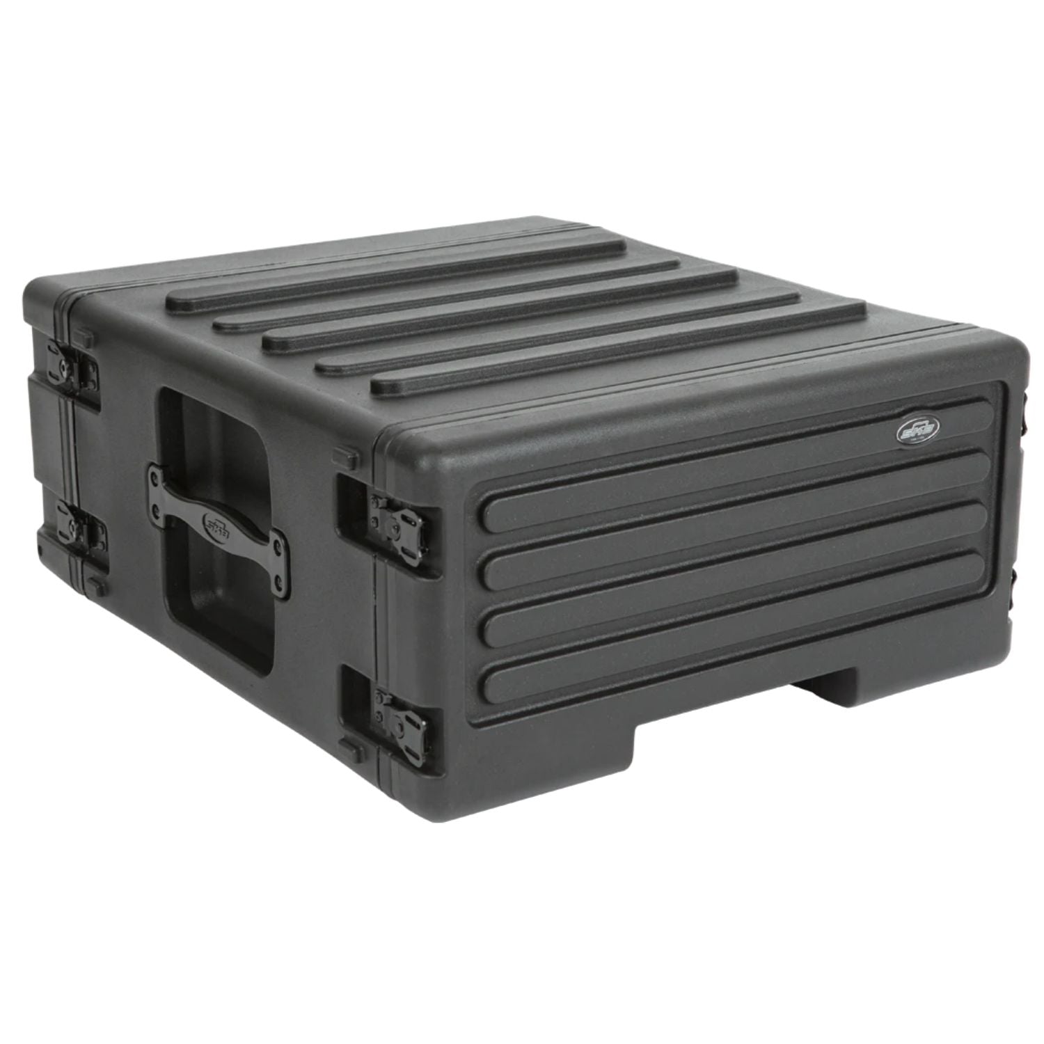 The exteriors feature SKB's recognizable bar design that signifies the rack unit size on the front and rear lids. Molded bars on top and bottom also provide interlocking capabilities allowing you to easily and securely stack them with SKB's Shallow Racks and Standard Roto Racks, making transport even more convenient and secure. Lids include rubber gasket seals to keep water out. Other standard features include front and rear steel threaded rails and rack screws (10-32 thread), recessed steel Mil-Spec twist latches, flush carry handles, and non-slip rubber feet. All Roto Rolling Racks are 17.6" deep from front rail to rear rail.