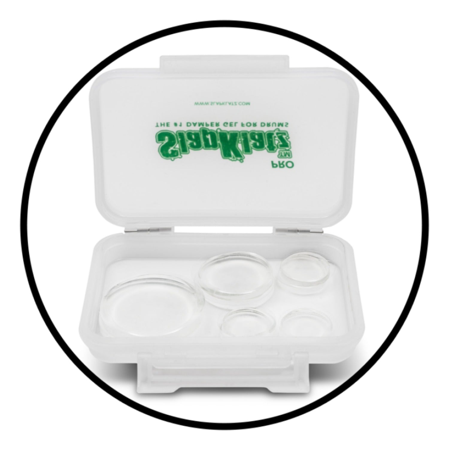 With SlapKlatz PRO clear, you get 6x small, 2x medium and 2x large clear - almost invisible - damper gels. The transparent design, makes these dampeners virtually disappear once placed on your drums, whether you are using clear or coated heads.
