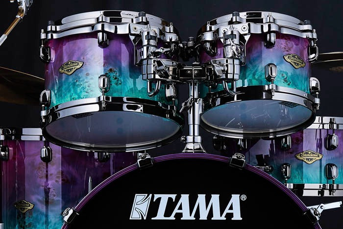 TAMA's new Starclassic Walnut/Birch offers a stunning limited series of Nebula Mappa Burl Fade Finishes. This kit offers a beautiful combination of Low to Mid tones from the 2 plies of American Black Walnut along with the attack and projection you get from the 4 plies of Birch.