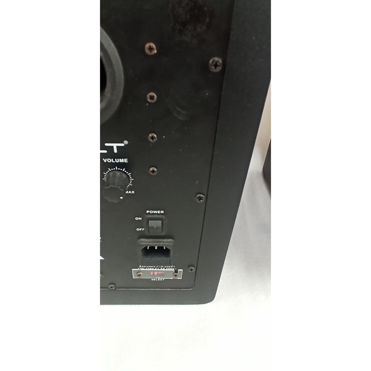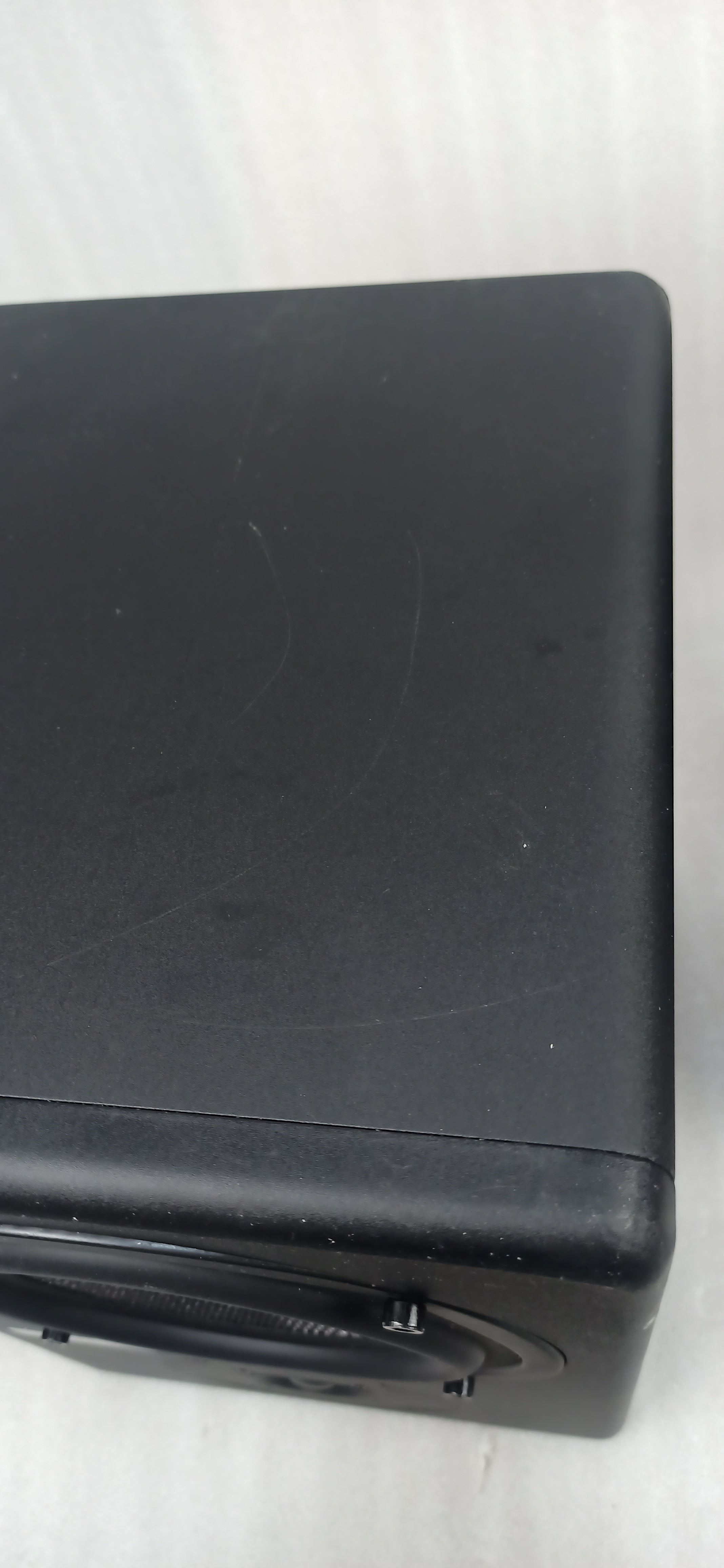 Scratch marks visible on the speakers.