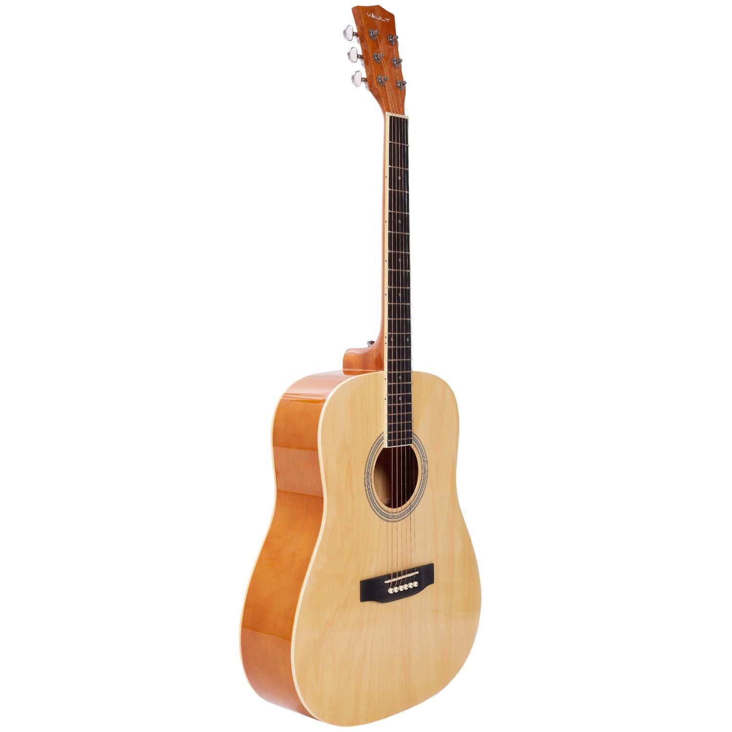 Vault DA20 Dreadnought Acoustic Guitar Kit Includes Gigbag, Strap, Picks, String Set, String Winder, Polishing Cloth and Allen Key: The Vault DA20 Dreadnought Acoustic Guitar is a full bundle with accessories designed for young guitar enthusiasts and musicians. It features an all Linden body for excellent sustain and projection. Die-Cast Machine Heads Die-Cast Tuners allow you to effortlessly & precisely tune your guitar. This is a tuning machine head preferred by professional guitarists. They are also considered best for long jam sessions, as they stay in tune for longer. Dual Action Truss Rod Vault DA20 comes with a dual action truss rod which gives you the liberty to adjust the action of your neck in either direction if bowed.