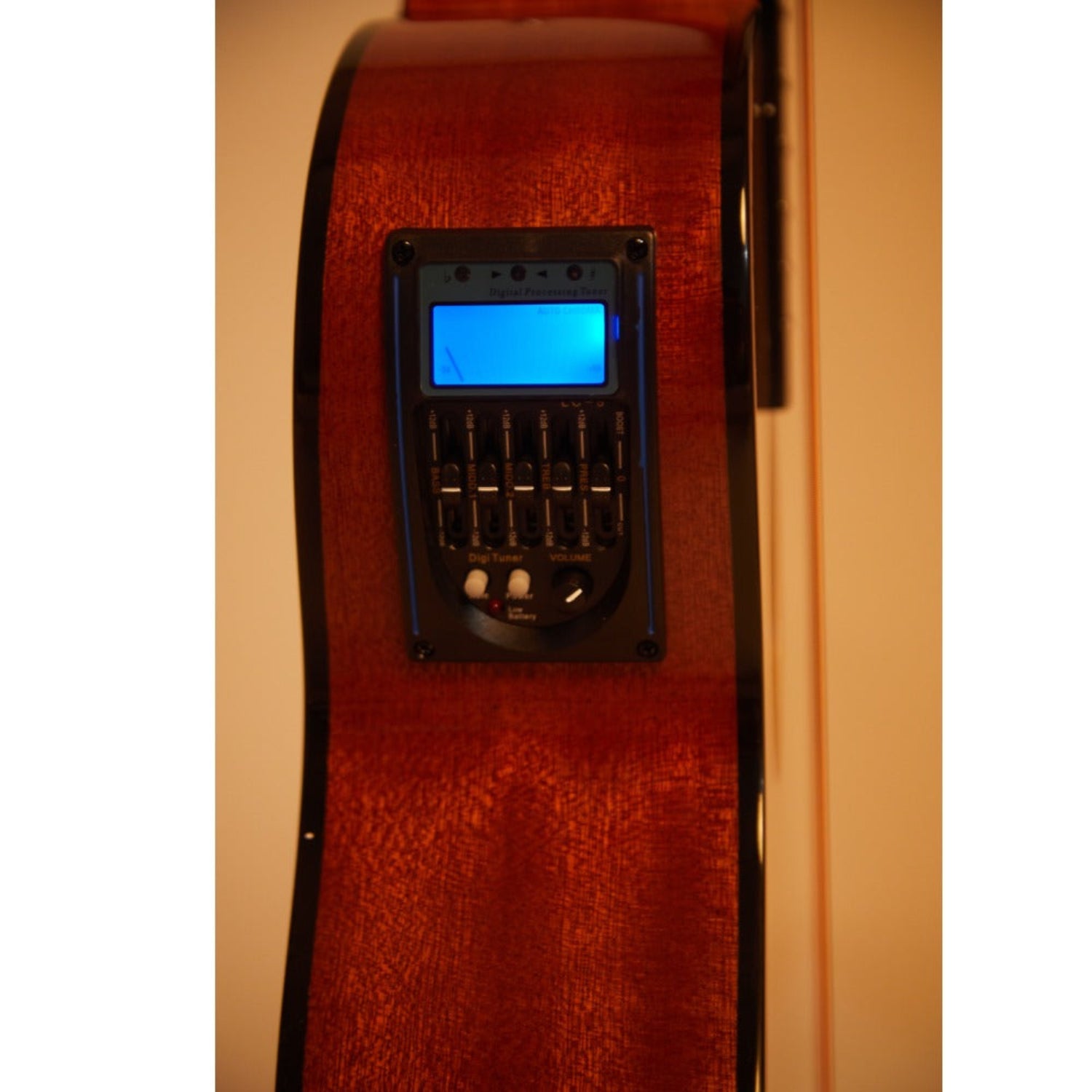 Vault EB40CE 4 String Solid Top Acoustic Bass Guitar With EQ and Padded Gigbag Overview: The Vault acoustic bass guitar has a deep jumbo body (depth of 110-135mm) to deliver a big natural acoustic sound with great volume to project a strong low-end and bright mids and highs. Plays great in plain acoustic mode, Plus, High grade LC5 electronics facilitate a great amplified sound off any standard bass amp and speaker. Features : Solid Spruce Top Found only in premium priced basses, Spruce provides an ideal balance between strength and flexibility, hence its overwhelming popularity as the wood of choice for tops of acoustic guitars .