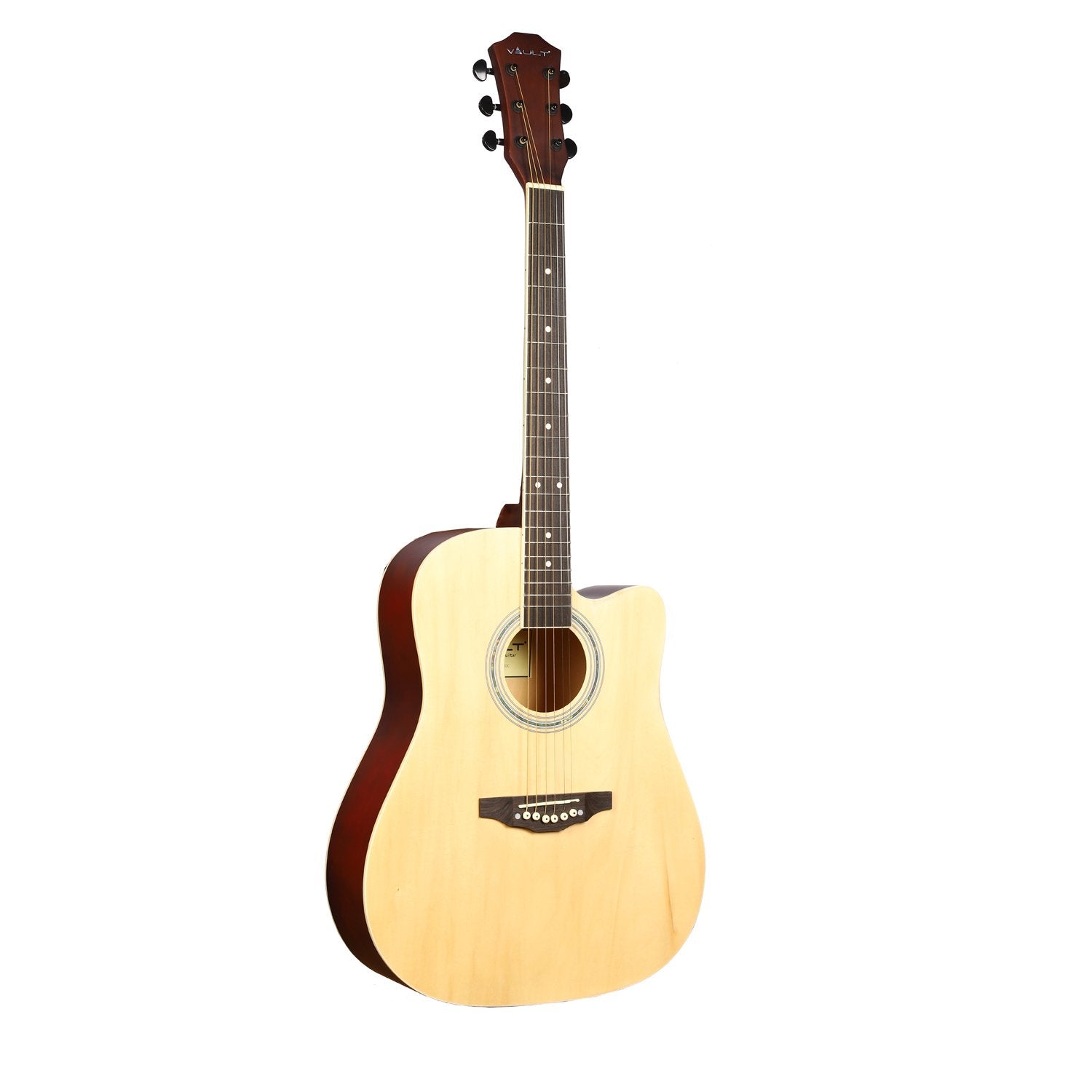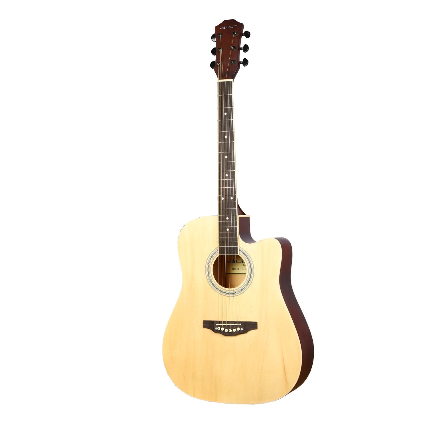 All Vault products come with 2 years standard warranty* *Warranty is not applicable on cables and accessories Vault ED-10C 41 inch Cutaway Acoustic Guitar VAULT premium Acoustic Guitars are built keeping the best functionality and craftsmanship in mind.