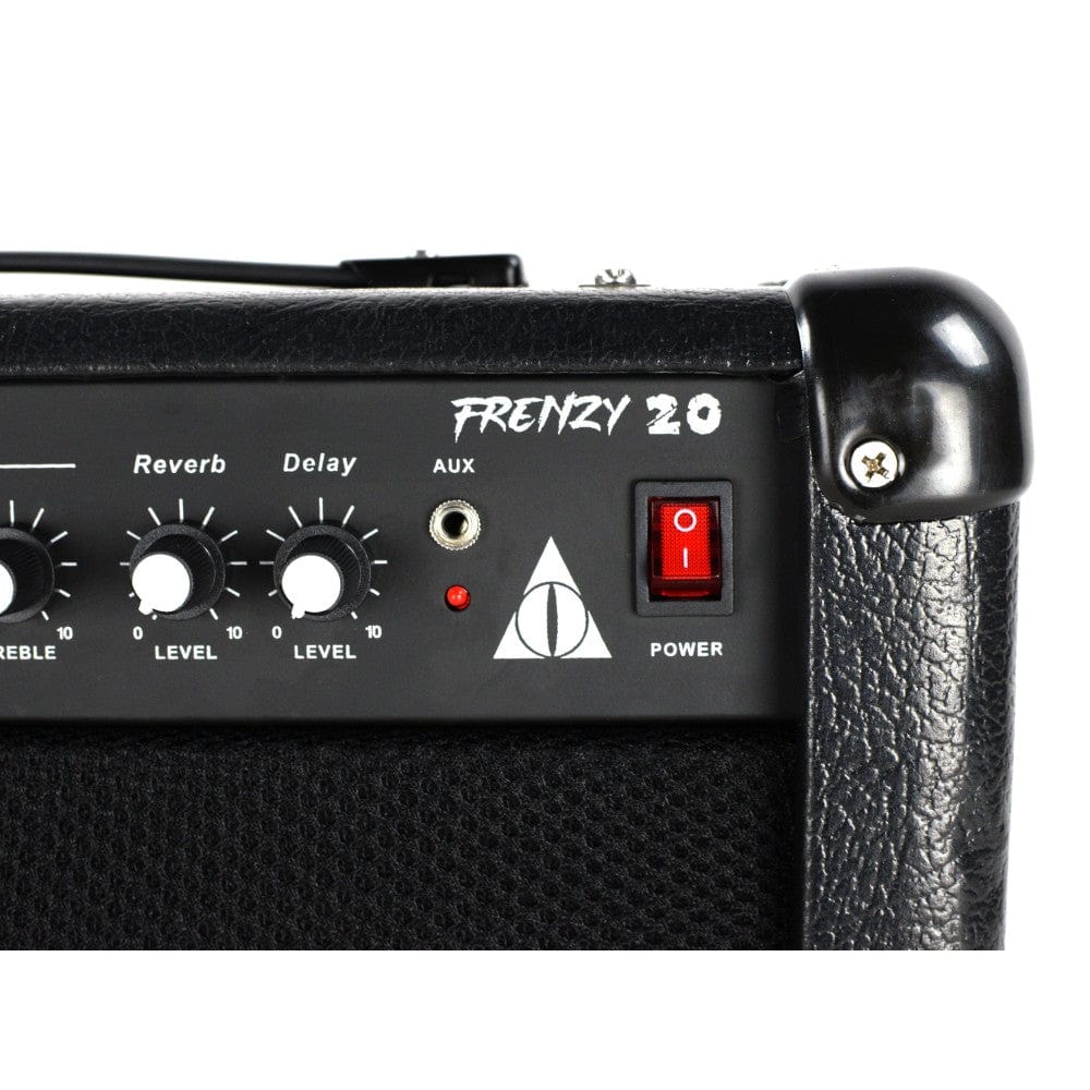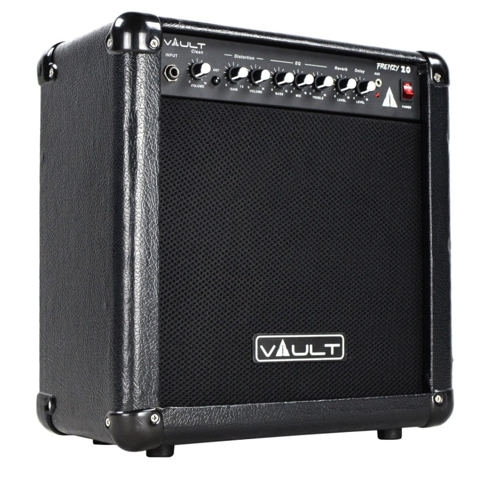 Vault Frenzy 20 Watt Combo Guitar Amplifier with Analog Distortion, Reverb & Delay All Playable Together The Vault Frenzy 20 is an Analog Combo Guitar Amplifier , designed to deliver exceptional tone & great functionality. 100% Designed & Made in India The Vault Frenzy 20 comes with an 8” Speaker, 3-band Equalizer, 2 Channels (Clean & Overdrive); and multiple analog effects. All these features allow you to shape and modify your tone the way you want. Use Delay & Reverb Together! The Frenzy 20 features 100% Analog Processing which allows you to use multiple effects like Overdrive/ Reverb/ Delay - All at the same time! Its analog Delay and Reverb gives the sound a very Vintage pedal feel.