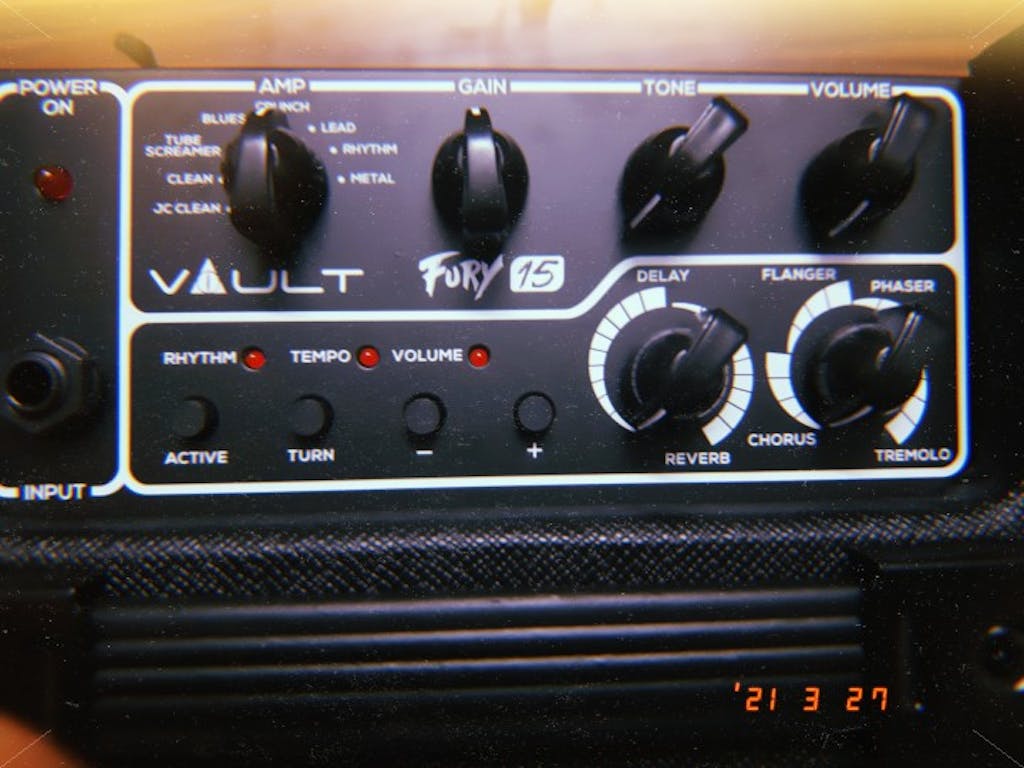 Vault Fury 15 Watt Digital Guitar Combo Amplifier with Effects and 36 pattern Drum Machine Overview: The Vault Fury 15 digital combo guitar amplifier has unmatched sound quality, features, and power. It features 8 amp simulations, 4 modulation effects and 2 spatial effects. Additionally, the Fury 15 comes equipped with a 36 pattern drum machine allowing you to adjust the drum’s tempo and volume as per your preference. Aux In- Now Jam along with your favourite tracks by simply plugging in your MP3 player into the Aux in provided at the back of the amplifier. Headphone Jack- Practice silently by simply plugging in your headphones which automatically mutes the speaker allowing you to practice for hours while disturbing no-one.
