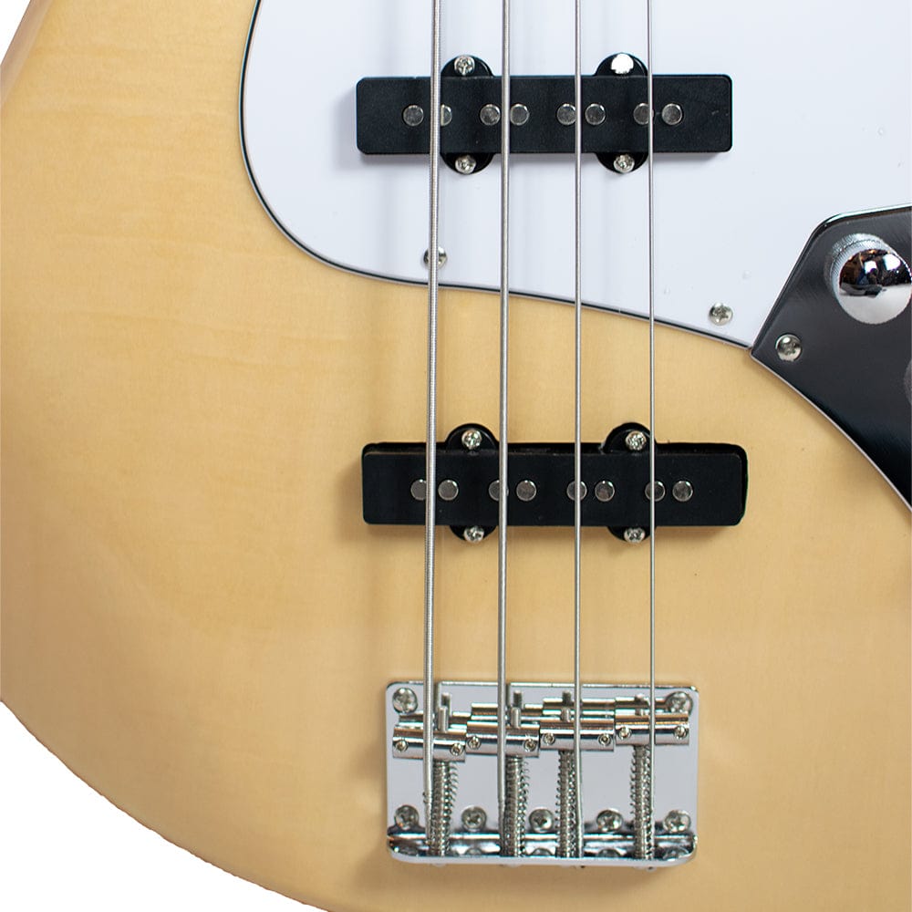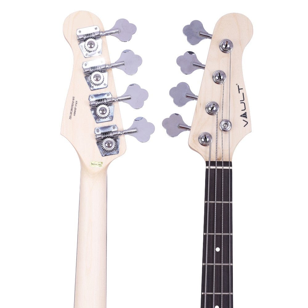 The Vault JB4 Bass Guitar features a Poplar Body and a smooth Maple Neck which aims to maximize comfort, performance & tone. It also comes with a Dual-Action Truss Rod that adds up as an essential and the Chrome Plated Tuning Pegs give you rock solid and reliable tuning.
