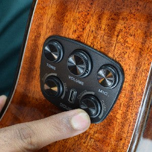 Vault Performer Pro FX Premium Electro Acoustic Guitar with Effects and Gigbag The Vault Premium Guitar Collection is finally here with full Solid-body construction, the finest components & unmatched sound. We introduce to you - The Vault Performer Pro FX - Premium Electro Acoustic Guitar With Trans Pickup And On-Board Effects! The Vault Performer Pro - All Solid Body Acoustic Guitar features a Full Solid Mahogany Body, including top, back and sides, for a rich warm and resonant tone & sustain. This balanced sound makes it perfect for the Performing musician in all styles of playing. In addition to the superior natural tones, guitars constructed in all solid woods have a significant long term advantage over guitars that use partial laminates or ply. That is because solid woods mature over time in a way that laminates and plywoods cannot. Therefore, all solid wood guitars like the Performer Series (that are regularly played) will sound significantly richer over years as the pure solid wood learns the vibrations of the strings, resulting in complex tonal flavours and higher responsiveness. One of the most unique aspects of this guitar is its Fretboard.