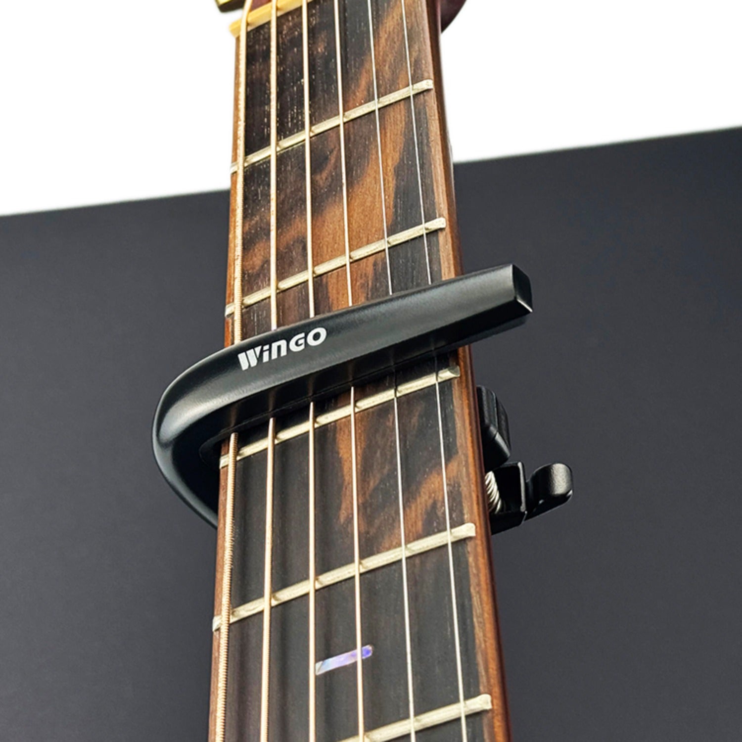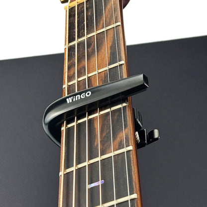 Wingo X5 Guitar Capo Overview: X5 Guitar Capo New designed capo for acoustic & electric guitars . Tension is adjustable . No Fret buzz when play. Fits for different guitar necks. Material: Zinc-alloy & Silicone pads. Colors: Black